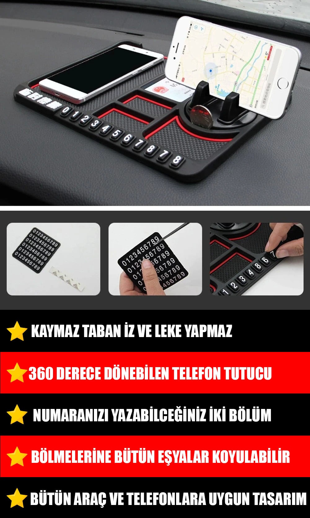 1 Adet NUMARATÖRLÜ 360 DÖNER PED TELEFON TUTUCU -